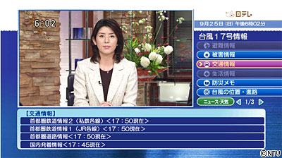 災害情報(文字情報)の提供は、データ放送上で、または地上波のニュース映像・音声を補足する情報(L字画面で表示)として、インターネット上のニュースとして、様々に活用されてきましたが、来年から開始が予定されているワンセグサービスでもこうした災害時の文字情報の提供は、重要な課題となっております。きめ細かな情報提供を目指して今後も機能の充実を図っていきますので、ご期待ください。