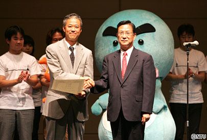 東邦 仁虎モバイルプロジェクト・アワード審査委員会委員長から表彰される日テレワンセグプロジェクトチーム一同