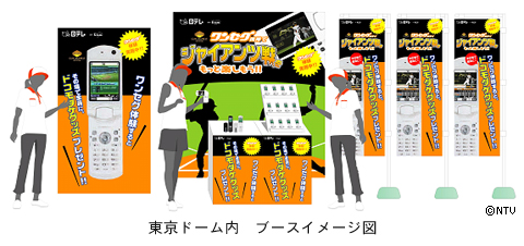 東京ドーム内22番ゲート、及び1塁側ジュニアスウィート席に専用ブースを設置。NTTドコモのワンセグ対応携帯電話「FOMA® P901iTV 」にて、日テレワンセグ野球データ放送を実際にご体感いただきます。