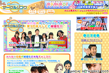 なお、日本テレビとバンダイネットワークスは、日本テレビの運営する「第2日本テレビ」のサイトと、バンダイネットワークスの運営する「サークルリンク」のサイト間において、相互リンクによるユーザーの交流を実施し、小中学生を中心としたファミリー層の集客をはかり、ファミリーをターゲットとしたNo1ネットメディアを目指していきます。