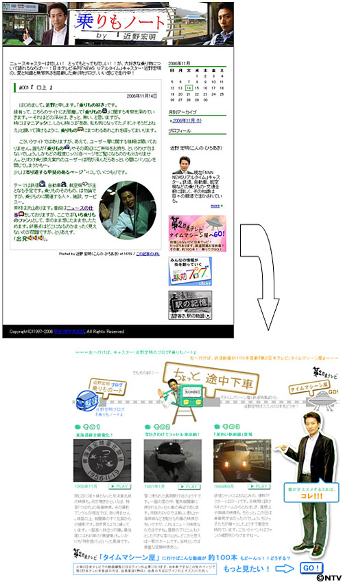 さらに、この「乗りもノート」内にある、第2日本テレビ(http://www.dai2ntv.jp/)へのバナーをクリックすると、そこには第2日本テレビで展開中の「タイムマシーン屋“鉄道特集”」から近野キャスターが選んだ、オススメの鉄道映像がすぐにご覧いただけます。