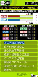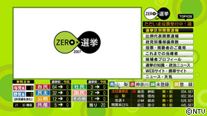 日本テレビ放送網株式会社(本社:東京都港区、代表取締役 社長執行役員 久保伸太郎)は、 7月29日(日)に投開票が行われる参議院選挙について、選挙に向けて特別に開設されたホームページ「ZERO×選挙2007」やデータ放送、またワンセグの連動・非連動コンテンツにおいて、豊富な選挙情報や開票速報をお届けします。
