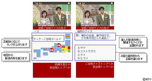 その第一弾となるのが「全国ご当地クイズの旅♪」です。日本テレビ系のネットワーク各社が、それぞれ担当する都道府県のクイズを出題します。クイズの正解数に応じてランクを上げ、クイズマスターをめざすゲーム性のあるコンテンツになっています。日本テレビの放送エリアだけではなく、全国各地からアクセスしてお楽しみ頂けます(一部地域を除く)。