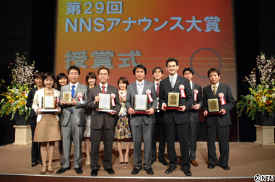 今年で29回目を迎えたNNSアナウンス大賞は、NNS各局のアナウンサー420人余りの中で、去年1年間、アナウンスメント、そしてパーソナリティの両面において最も輝いた人に贈られます。その授賞式が2008年3月19日(水)、系列各局の社長をはじめとする関係者、受賞者を含めたアナウンサー出席のもと、日テレホールで行われました。