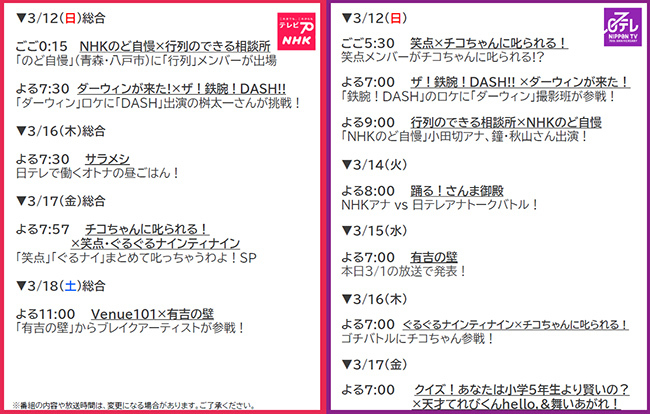 ◇テレビ放送70年「NHK×日テレ コラボウィーク」◇