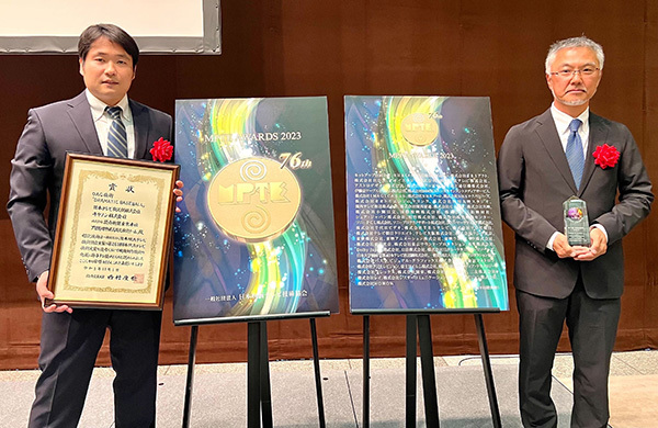 授賞式に参加した、技術統括局の篠田貴之(左)と渡邊勇二(右)