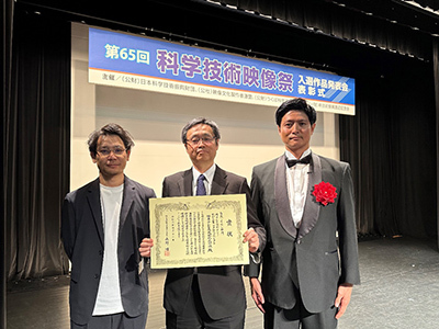 昨年の「登山鉄道の科学」に続いて、日本で最も権威のある科学技術の映像祭で栄えある賞をいただいたことにスタッフ一同感謝しています。「所さんの目がテン!」は、教育番組、青少年向け番組として、1989年の放送開始以来、35年にわたって社会貢献を目指した番組作りに励んで参りました。特に「かがくの里」は、荒廃した里山の再生を通じて、生物多様性の保全にとって人と自然が共生する二次的自然環境の重要性を、10年にわたり発信してきました。