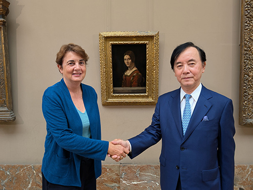 これに先立ち、9月2日、日本テレビ杉山美邦代表取締役会長執行役員は、ルーヴル美術館のローランス・デ・カール館長を訪問し、「ルーヴル美術館展 ルネサンス」開催契約の調印を行いました。