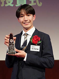 のびやかでハリのある声と、ナレーションの表現力が高く評価されました。中継でみせるゲストとの距離感、相手の懐にスッと入り込み自然な表情を引き出す技術も素晴らしく、特に、子どもへのインタビューの仕方は、「全アナウンサーのお手本」という声も上がりました。自然体で、自らの言葉で伝える力を持つアナウンサーとして、最優秀新人賞に選ばれました。