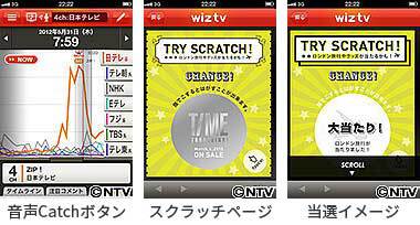 日本テレビ放送網株式会社(本社:東京都港区、代表取締役 社長執行役員:大久保好男、以下 日本テレビ)では、ソーシャルテレビ視聴プラットフォームアプリ「wiz tv」を活用した新しいキャンペーン『SCRATCH TIMEキャンペーン ~その瞬間を捕まえろ!~』を2月26日(火)より開始します。今回のキャンペーンは、日本テレビとして初めてテレビ音声認識技術を活用し、テレビCMなどの音声に連動するスマートフォン広告展開です。