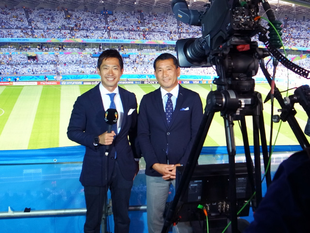 日本テレビアナウンス部は、若手でも大きな舞台での仕事に挑戦させてくれます。私はすでにオリンピックに4回、サッカーW杯に3回行かせてもらいました。2014年のブラジルW杯日本対ギリシア戦で、私はピッチサイドでのリポート、つまりゴールの真横でリポートを担当しました。長友選手のシュートの音…本田選手の掛け声…あの迫力と興奮は忘れられません。おそらく選手と監督以外で一番ピッチに近い場所で試合を見ていたのが私だと思います。そうした国際大会の熱気を肌で感じ 、それを伝えられることが、この仕事の醍醐味です。