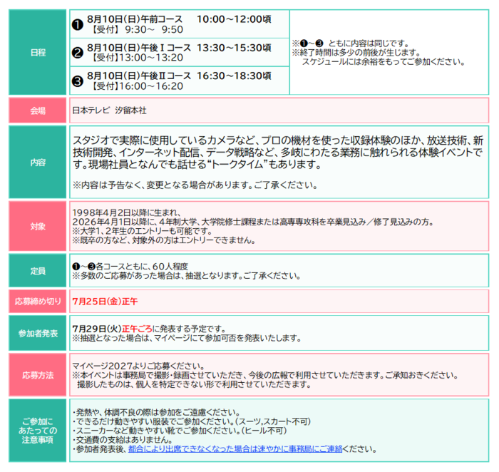日テレテクノロジー部門の一大体験イベント! エントリー受付中!