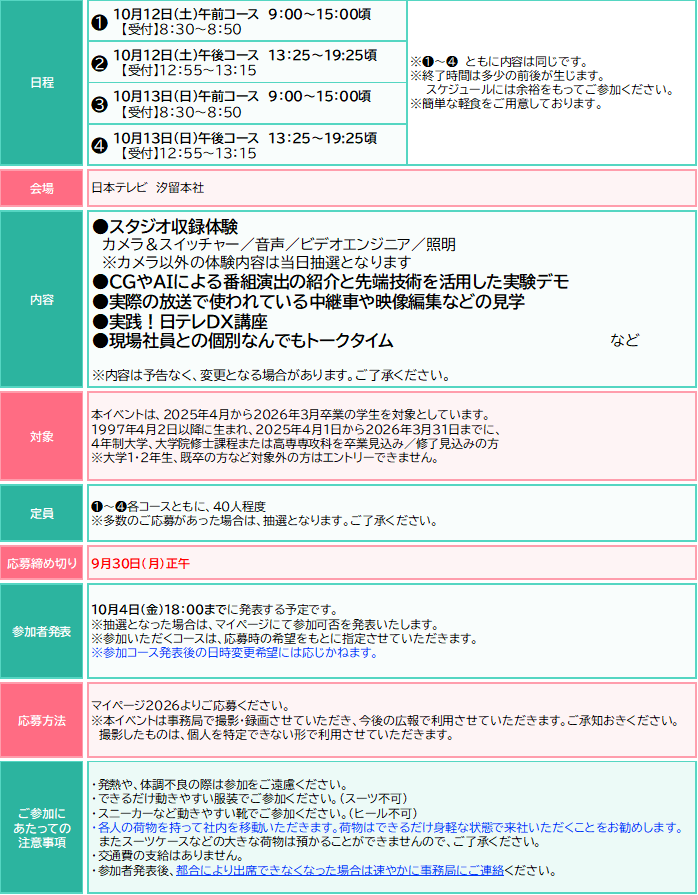 理系学生必見! 日テレテクノロジー部門で働きたい人はぜひお申し込みを!!