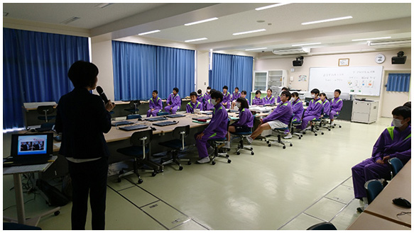この日、加須市立昭和中学校には、いろいろな企業の人が集まっていました。昨夏に計画した中学2年生向けの職業体験学習が猛暑の影響で中止になってしまったため、その代わりに、様々な企業に出前授業をお願いし、学校内で一斉に開催するという試みだったそうです。松尾芭蕉ではありませんが、「隣は何をする人ぞ」。くるっと校内を回ってみたところ、「街づくり」をテーマにしたものや、「健康」や「医療技術」を説くもの、「指揮者の仕事とは?」や「音大生の生活」まで、実に多彩な授業が行われていました。最近は企業の出前授業を一斉開催するこのようなスタイルは増えてきているそうです。