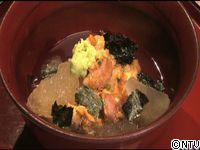 親子丼1/6にスープセット(冷たいだし汁)を合わせてものです。