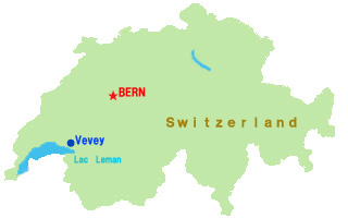 スイス、レマン湖のほとりにある緑の町・ヴヴェイ。 偉大な喜劇役者であり、映画監督でもあるチャップリンは、 晩年、この広い湖を見下ろす大きな邸宅で、家族と共に暮らしました。 |