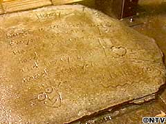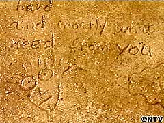 玄関先の、バイクを入れやすいように段差を埋めたコンクリート。 彼はそこに、大好きなビリー・ジョエルの歌を刻みました。 |