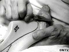 貧しかった子供の頃、洗礼式に履いていく靴がないと泣いていた妹に 彼が初めて作った白い靴。 それを履いた妹の、弾けるような笑顔…。 この時、彼の胸に刻まれた感動が靴職人フェラガモの原点だったのです。 |