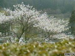 山肌に咲く桜が色鮮やかな、阿蘇山麓のふもと・北里。