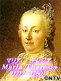 Maria Therezia(1717〜1780) オーストリア女帝(在位1740〜1780)。ウィーン生まれ。 1736年、のちの神聖ローマ皇帝フランツ1世と結婚、父カール6世の死後即位するが、フランス、スペイン、バイエルンとの間にオーストリア継承戦争(1740〜48)が勃発。またプロイセンとのシュレージエン戦争(1740〜42、1744〜45)で同地を失い、七年戦争(1756〜63)で奪回を志すも敗北。 夫の死んだ1765年より長男ヨーゼフ2世と共同統治。軍隊や官僚機構を整備して近代的中央集権国家を建設し、息子の急進的な啓蒙主義政策に反対する一方、教育・法制改革、農奴解放、商業新興に努めた。 |