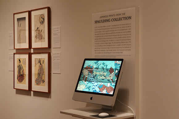 美術館の浮世絵展示室で、こんな風にコンピューターの画面を通じて観ることができます