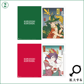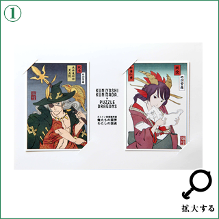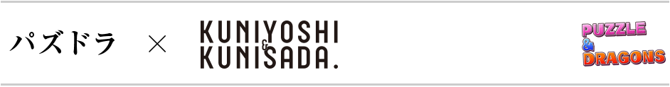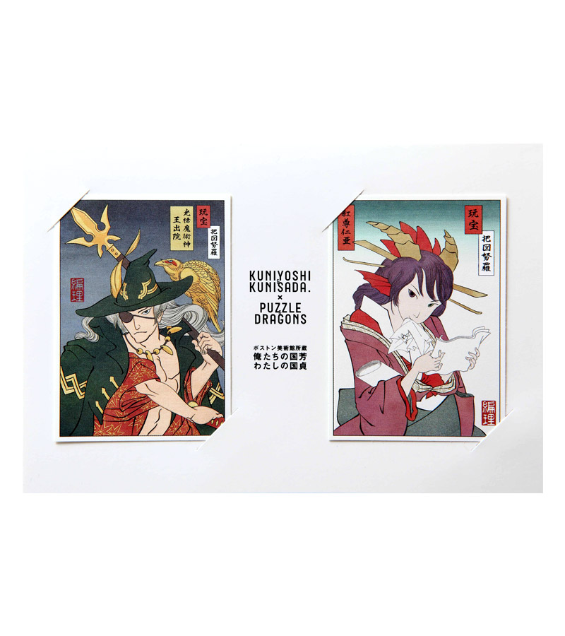 国芳と国貞のポップな作品世界に登場する奇想天外なキャラクターやデザイン、思わず買い揃えたくなるシリーズものなど、200年前と現代のエンターテインメントに親和性を見出し、スマホゲームと展覧会が奇跡の初コラボ!「パズドラ」人気キャラの現世の赤龍喚士・ソニアと光槍の魔術神・オーディンが、それぞれ本展のメインビジュアル歌川国芳「国芳もやう正札附現金男 野晒悟助」と歌川国貞「当世三十弐相 よくうれ相」と融合し、浮世絵に!?