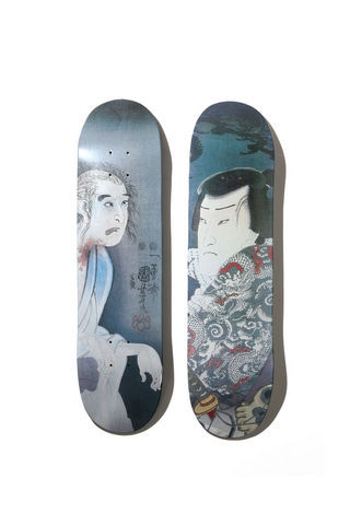 斬新な視点でデザインしたTシャツとスケートボード、スカーフをリリースします。展覧会場と、2016年4月末、“日本”をキーワードに新宿にオープンする「ビームス ジャパン」で販売します。