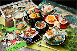 歌川国芳作品に数多く登場する魚介を料理の一部に取り入れ、天保元年創業から受け継いだ料理の技法で日本料理ならではの「美・品・粋・格」にこだわった四季を感じる料理になっています。特別なお食事のひとときを、どうぞごゆっくりとご堪能下さい。