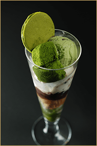 - 銀座立田野では本展テーマカラーの緑を抹茶に見立て、日本で古くから親しまれてきた「餅」にクローズアップした限定パフェを販売致します。「抹茶薫る餅ぱふぇ」には白玉餅、わらび餅、近江羽二重餅米を使用したアイスクリーム三種など様々な食感が楽しめるデザートに仕上げました。