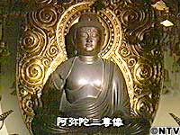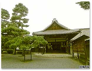 ![]() 自然の光を生かした本堂は、仙洞御所から移築されたもの。 本尊・阿弥陀三尊の佇まいが、雅な趣を漂わせています。