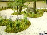 ![]() 本堂の前には、彼女に因んで作られた「源氏の庭」。 白砂と雲を形どった苔の緑が美しく、大和絵の野山を見るようです。 閑静な庭に彩を添える桔梗が、紫式部を偲ばせます。