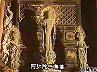 ![]() 石段を上りつめたところにあるのが本堂です。古くから歴代天皇の帰依が厚く、厳かな雰囲気の中、秘仏を守り続ける阿弥陀三尊の姿が印象的です。