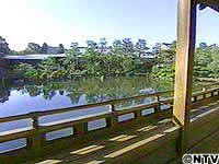 ![]() 水面に映る優美な姿は、社殿を囲むように作られた神苑の橋殿。