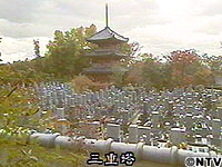 ![]() 朱塗りの三重塔は、秀吉が主君・織田信長を弔うために建てたといわれています。