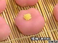 ![]() 二条若狭屋では、その梅をかたどった京菓子が作られます。 外郎(ういろう)で白あんを包み、おしべをあしらった匂いやかな「福梅」。