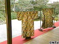 ![]() ひときわ目を引く艶やかな着物は、北政所が愛用した小袖。 これは、まもなく迎える高台寺の創建四百年を記念して、寺に残る掛け軸の表装を元に復元されたものです。