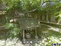 ![]() 本殿背後の大杉谷(おおすぎだに)から湧き出る霊泉・亀の井の水。よみがえりの水とも言われ、のどを潤す人が今も絶えません。
