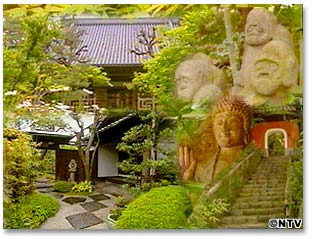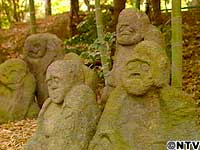 ![]() ここに庵(いおり)を結んだ画家・伊藤若冲(じゃくちゅう)は、禅の心に魅せられ、仏の世界のご利益を現世にと、裏山に五百羅漢を造りました。