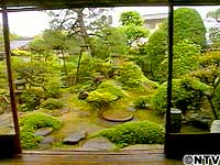 ![]() 苔むした庭石や石灯籠(いしどうろう)が見事にとけ込み、京都市の名勝に指定されています。