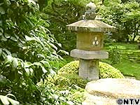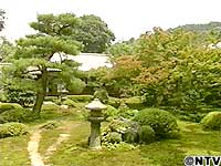 ![]() 客殿の前に広がるのは「枯山水」の庭園です。 緑一面の庭を愛でながら、渡る風に身を任せて頂く「一服のお茶」はふと、心が安まるひと時です。