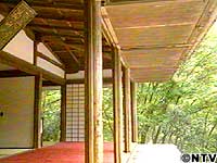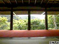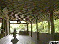 ![]() いにしえと変わらぬ縁側からの眺め。 紅葉の名所として知られる「高山寺」は、十一月の半ばになると、山全体が赤く染まります。