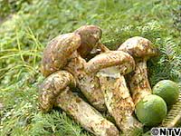 ![]() 高山寺のすそに店を構える「とが乃茶屋」。 紅葉よりひと足先に秋の味覚を味わうことができます。 かぐわしい香りを放つ松茸。