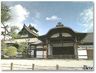 ![]() 御所の旧殿を賜ったとされる大書院(おおしょいん)では、狩野派の障壁画が、桃山時代の荘厳な様子を偲ばせます。