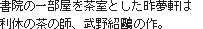 ![]() 現在の独立した茶室が完成する以前の 古い様式を伝えています。 ![]() |