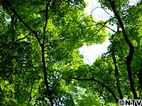 青紅葉の下を歩きながら、上を向いて1枚。