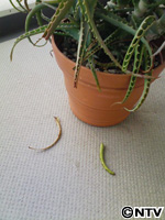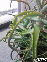 アロエの緑はすっかり赤茶けた色になり、上に向かって伸びるはずの葉もグニャリと下に折れ曲がってしまった。