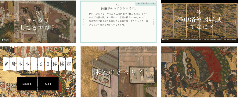本アプリは、高精細画像で「舟木本」の細部に迫り、Q&Aで当時の風習、文化、ファッションなどをわかりやすく紹介。「舟木本」の緻密な描写でいにしえの都の圧倒的な魅力をお楽しみください。
