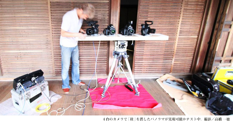 | 甲斐 | そのときは4台。実はその前に僕と高橋で東京のスタジオでスチルのカメラを2台使って、間にある柱をどうやったら実写で合成して消せるかという実験に取り組んでいました。柱とカメラの距離を計ってどの辺からだったら消せるだろうかと。 |