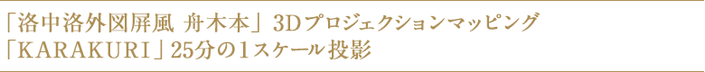 特別展「京都-洛中洛外図と障壁画の美」の開催を記念して行われた秋のスペシャルナイト、洛中洛外図3Dプロジェクションマッピング「KARAKURI」は、10月17日の実施以降大反響を呼び、再演を希望する声が多数寄せられています。そこで、11月の夜間開館日限定で、「KARAKURI」を25分の1スケールのミニチュア版で再演します。