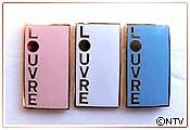 ピンバッジは、フランスのトリコロールをイメージし、 ブルー、ホワイト、ピンクの3種類。 |